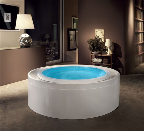 Con le sue dimensioni di Ø200xH67cm, la vasca da bagno Fusion 200 può essere posizionata a centro stanza ad incasso o semi incasso, con o senza pannellatura.