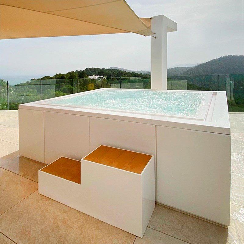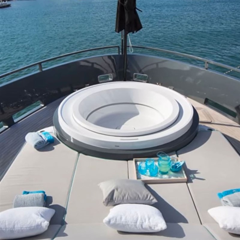 Si potrebbe pensare anche a una vasca idromassaggio installata sulla prua di uno yacht o nel giardino di casa propria o nello spazio esterno di un hotel, circondata da sdraio o amache dove potersi riposare. O perché no, all’interno di uno spazio chiuso interamente circondato da vetrate dalle quali passa la luce. Ma ancora meglio, una vasca idromassaggio nella propria camera da letto: cos’altro desiderare?
